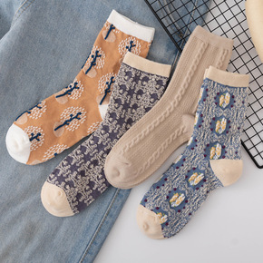 复古袜子女中筒袜ins潮春秋民族风秋冬个性碎花日系...