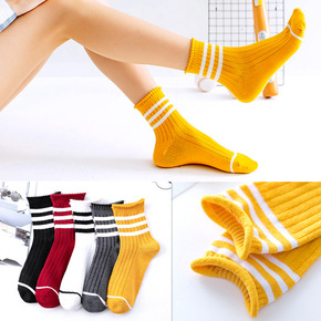 厂家秋冬日系袜子女士三杠条纹卷边堆堆袜学院风休闲中...