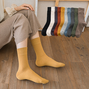 2021新品多色丝光质感毛调棉袜女秋冬基础款中筒袜...