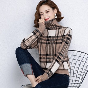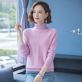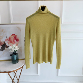 批发2021秋冬新款韩版修身百搭高领针织衫堆堆领打...