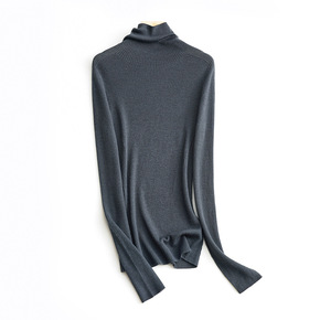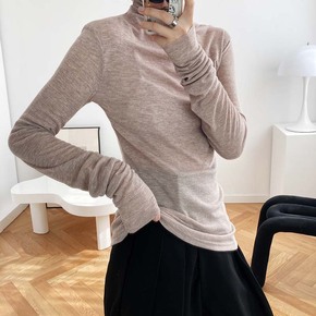 冰丝莫代尔高领套头打底衫女长袖早薄款修身堆堆领T恤...