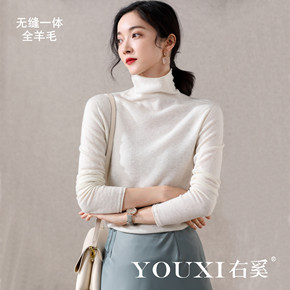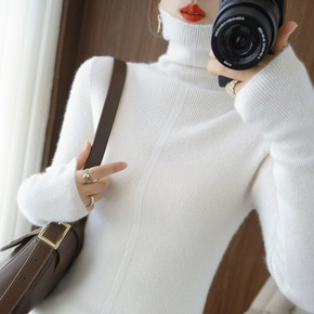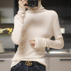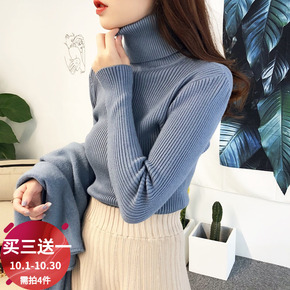 秋冬新款羊毛衫女打底修身堆堆领百搭上衣针织衫高领长...