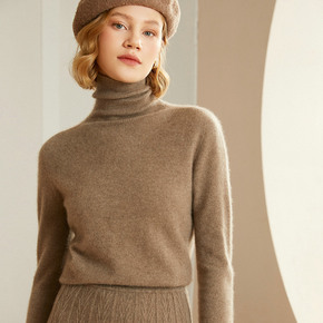 2021冬季宽松显瘦堆堆领羊绒衫女纯山羊绒针织打底...