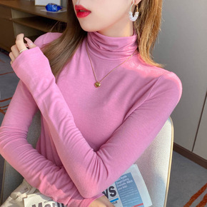 高领打底衫女装2021秋冬新款内搭堆堆领长袖t恤洋...