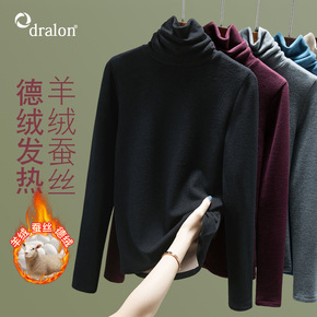 羊绒蚕丝堆堆领打底衫女2022秋冬新款女装内搭德绒...
