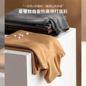 纯色桑蚕丝保暖发热加绒内搭修身打底衫女 秋冬高领堆...