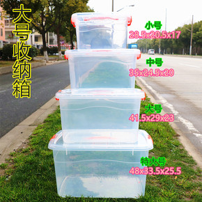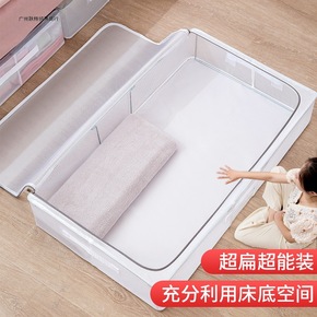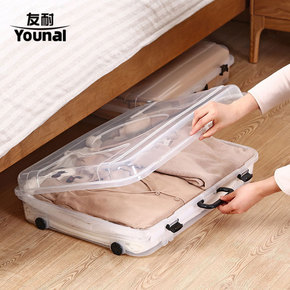透明收纳箱全透有盖装书床底抽屉式储物带滑轮整理箱衣...