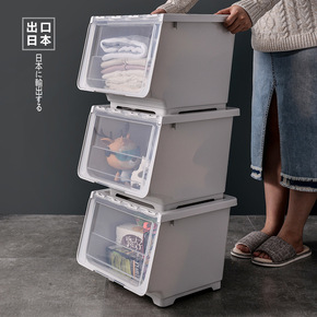 .前开式收纳箱口整理箱衣服箱子储物箱带滑轮家用卧室...