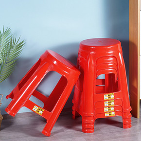 喜庆塑料凳子家用加厚餐凳客厅大排档简约圆凳子批发红...