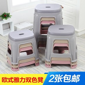 加厚欧式防滑成人塑料凳子高凳餐桌椅子茶几矮凳浴室凳...
