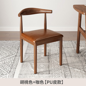 餐厅椅子实木餐椅北欧简约靠背家用电脑书桌牛角椅凳子...