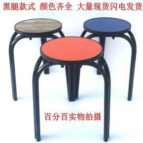 服装厂凳子家用彩圆高加粗圆管木板餐塑料木餐厅套折叠...