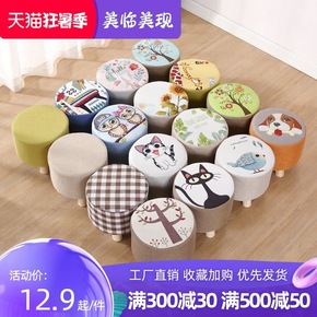 家用网红换鞋凳创意实木小板凳经济型客厅布艺沙发圆凳...