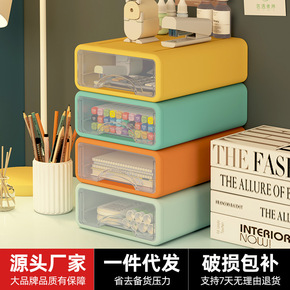 抽屉式桌面收纳盒塑料文具透明储物盒办公室化妆品多层...