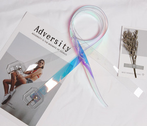 透明镭射腰带女果冻皮带女士塑胶腰带 糖果荧光蝴蝶装...