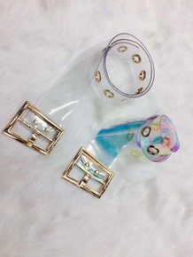 新款欧美风时尚百搭透明皮带PVC女式宽腰带腰封方扣...