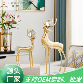 轻奢后现代铜鹿摆件创意铜制品客厅酒柜电视柜工艺品家...
