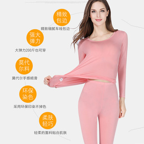 一件代发V领刺绣蕾丝塑身美体秋衣秋裤套装女保暖内衣...