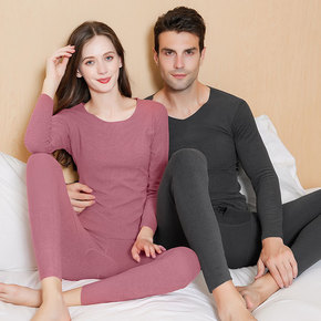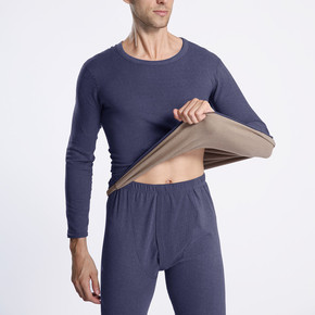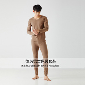 秋冬新款磨毛德绒保暖内衣套装男款V领发热秋衣秋裤男...