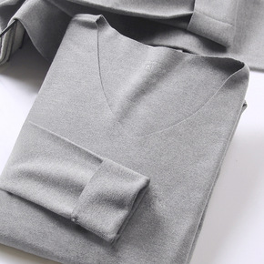 新款修身男士无痕保暖内衣套装V领德绒双面磨毛发热打...