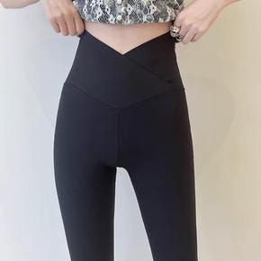 塑身芭比交叉V腰鲨鱼裤女外穿打底裤 秋冬季高腰收腹...
