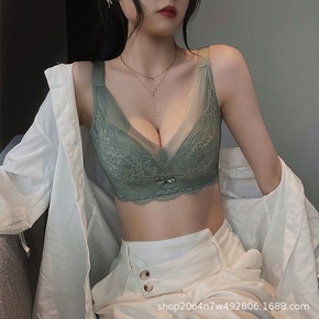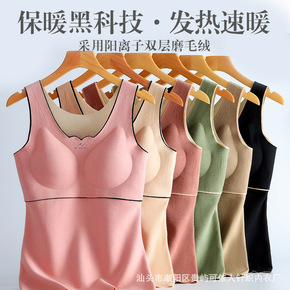 新V领蕾丝发热内衣一体式免穿文胸秋冬打底保暖长袖塑...