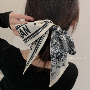 ins韩版chic小丝巾春秋装饰双面围巾发带绑包包...