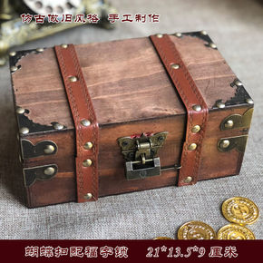 带锁复古木盒老式木质储物盒证件收纳百宝箱塔罗牌卡片...