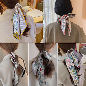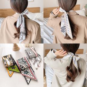 仿真丝温柔碎花女丝巾 塔罗牌外贸跨境丝缎带网红扎头...