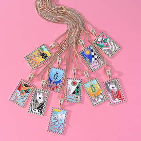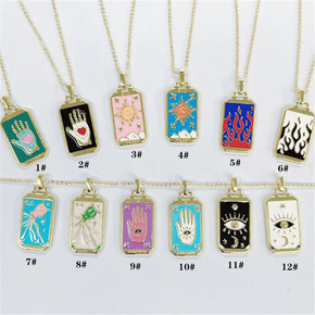 铜18K真金保色电镀INS爆款彩色滴油塔罗牌吊坠项...