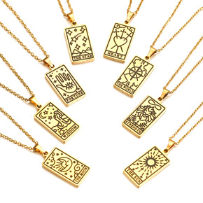 欧美复古流行饰品吊坠 油画塔罗牌吊坠项链挂件不锈钢...