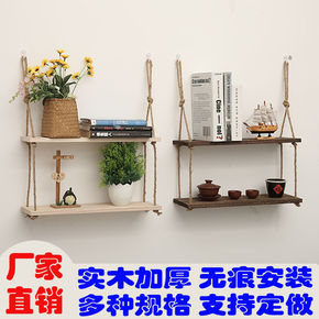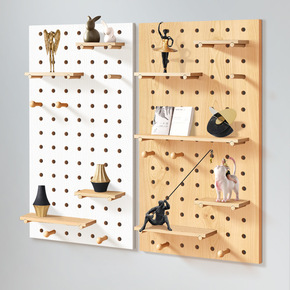 洞洞板实木墙壁置物架装饰挂墙木质北欧隔板收纳挂架挂...