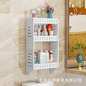 免打孔卫生间浴室置物架壁挂式墙上收纳架子洗漱用品牙...