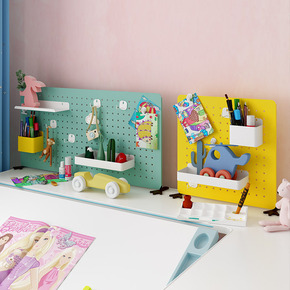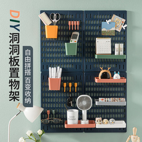 洞洞板桌面办公桌置物架收纳金属免打孔墙上书桌可立式...