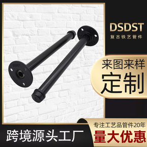 铁艺水管置物架 一字杆衣架挂钩 酒吧服装店金属壁挂...