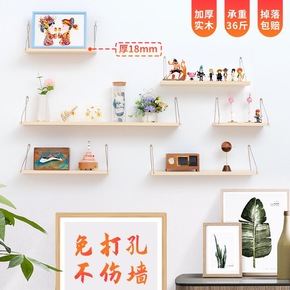 实木免打孔墙上置物架创意隔板客厅卧室收纳现代简约墙...