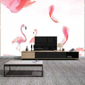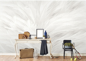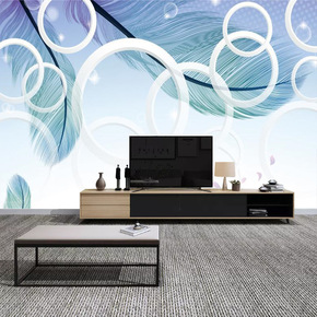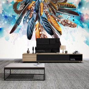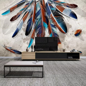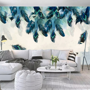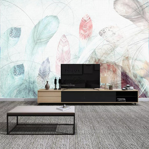 北欧手绘卧室壁画3D彩色羽毛电视背景墙壁纸影视墙布...