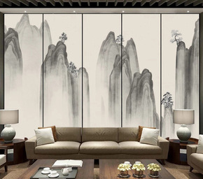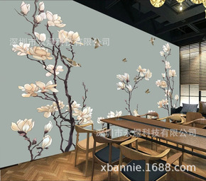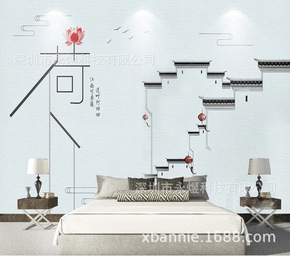 新中式现代素雅温馨电视背景墙壁画 酒店歌厅包间无缝...