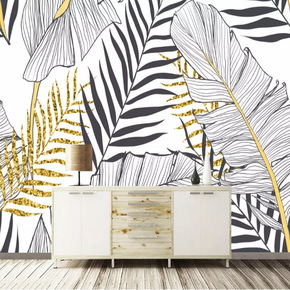 北欧抽象个性手绘羽毛客厅电视背景墙纸无缝沙发壁纸大...