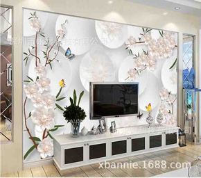 3d立体现代简约蒲公英壁画5d客厅沙发电视背景墙壁...