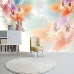 3d立体北欧彩色羽毛卧室婚房墙纸简约客厅沙发电视背...