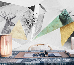 简约北欧现代个性几何壁画电视背景墙纸卧室客厅艺术墙...