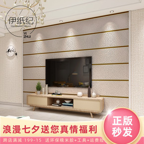 现代简约鹿皮绒卧室无纺布客厅立体横条纹影视墙壁纸电...