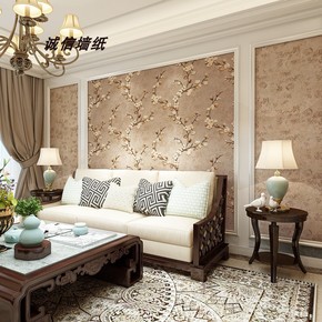 复古美式无纺布3D立体AB版壁纸素色田园卧室客厅电...