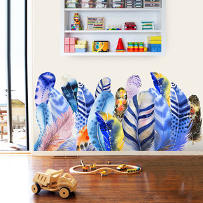 蓝色贴纸墙纸自粘色卧室温馨客厅装饰即时防水防潮背景...