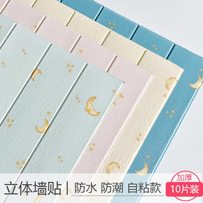 墙纸自粘防水防潮卧室儿童温馨3d立体墙贴防撞卡通软...