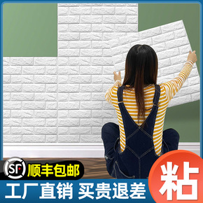 3D立体墙贴防水防潮防霉泡沫砖墙纸自粘卧室温馨墙面...