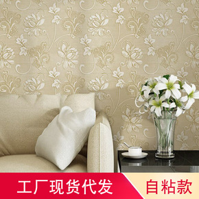 欧式玫瑰PVC墙纸自粘简约壁纸自贴卧室客宿舍防水翻...