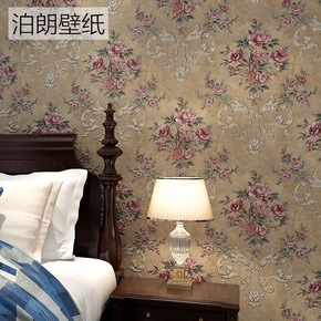 美式乡村田园壁纸3d立体无纺布复古墙纸卧室客厅小碎...