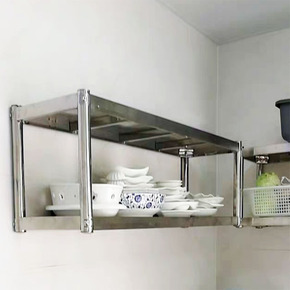 工厂厨房不锈钢置物架多功能打孔挂墙架两层三层吊架上...